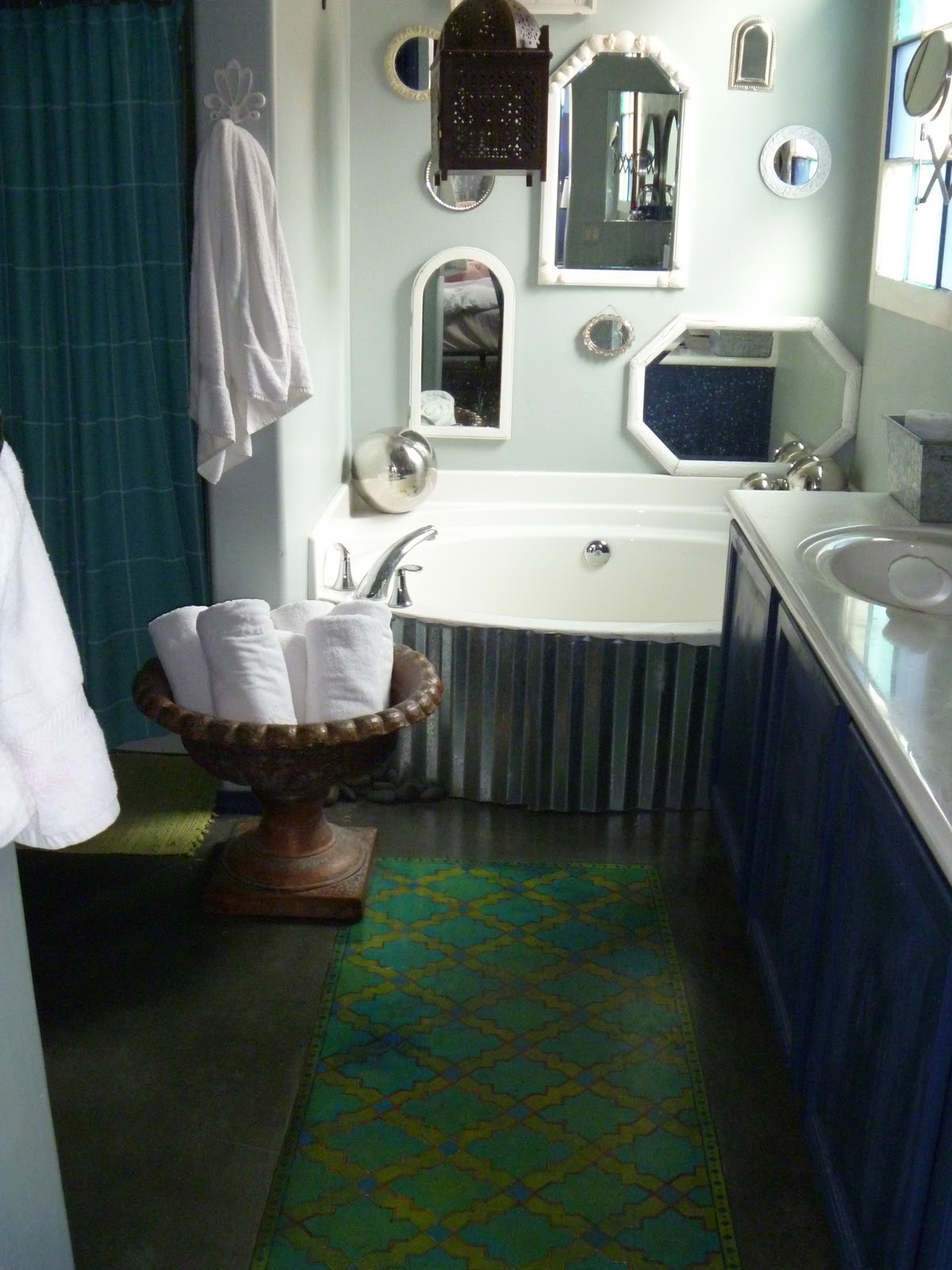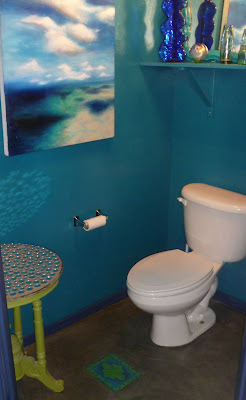 You are so blessed with your unique style, what a gift you have! Not to mention patience (beautiful shell mirror). I love the bathroom "rug". Thanks for the inspiration.