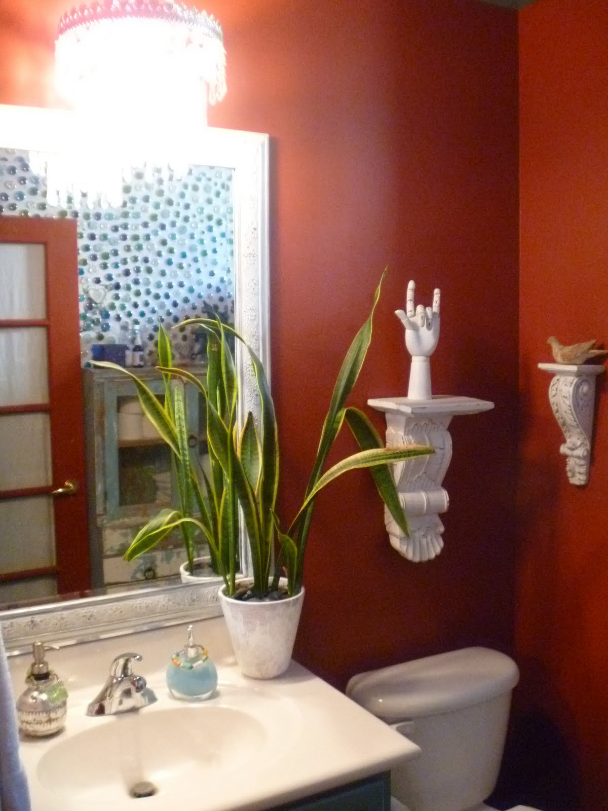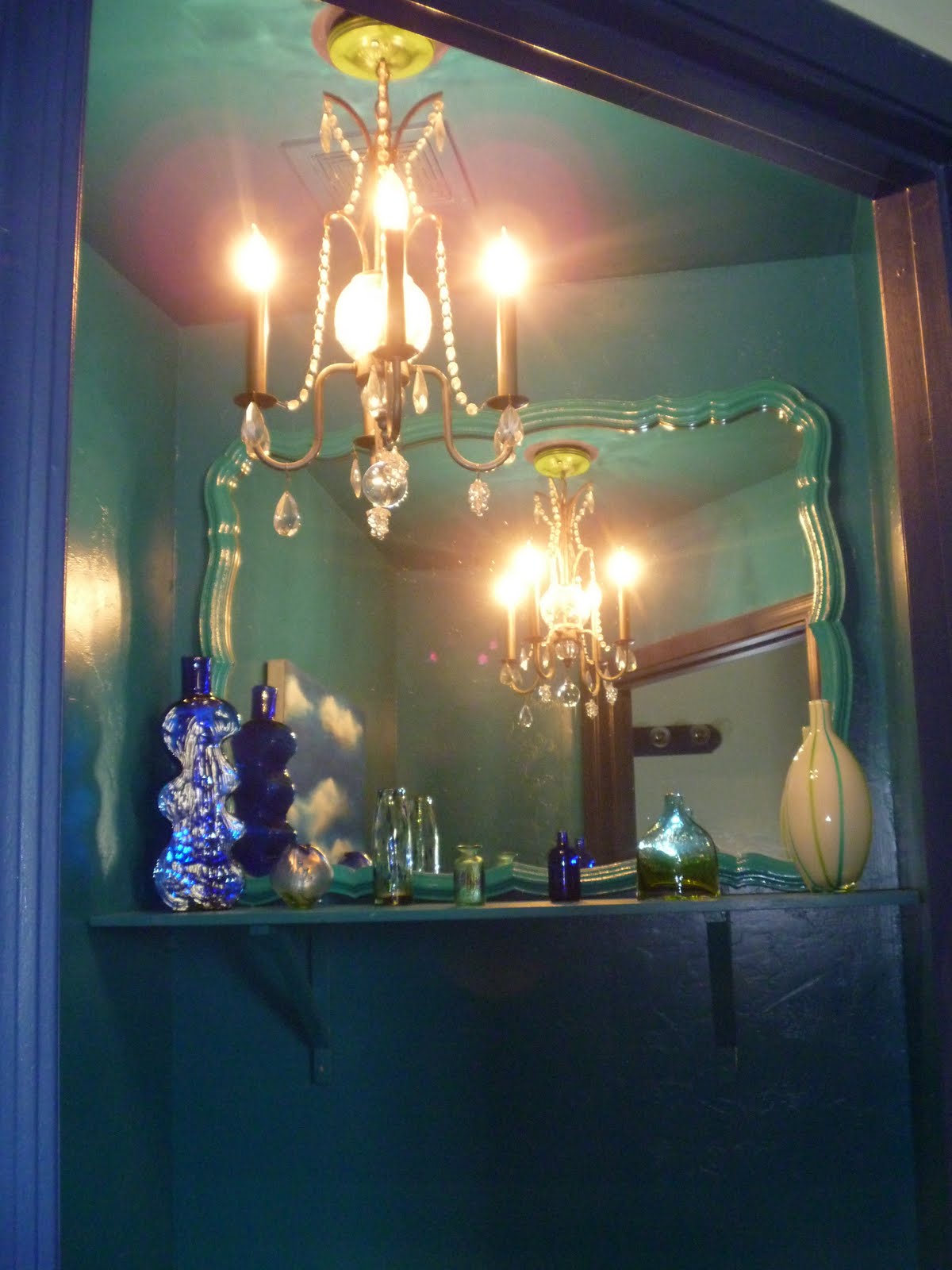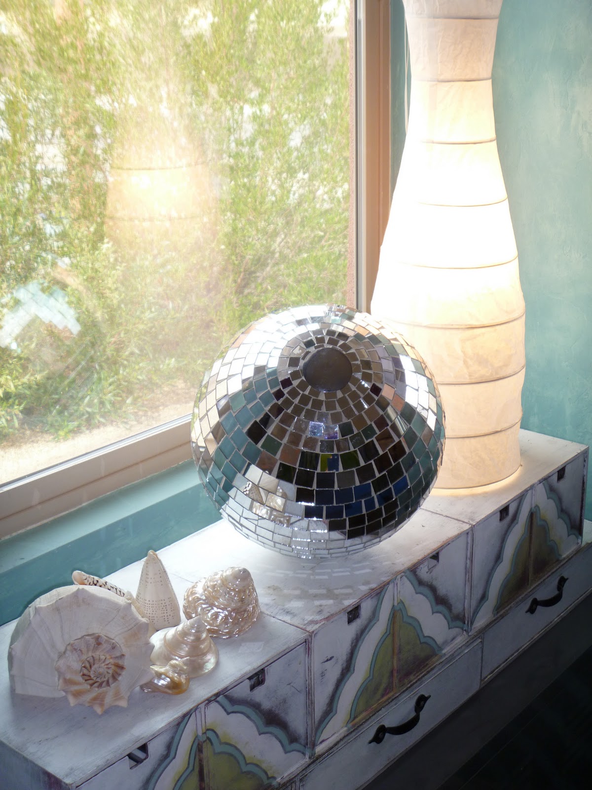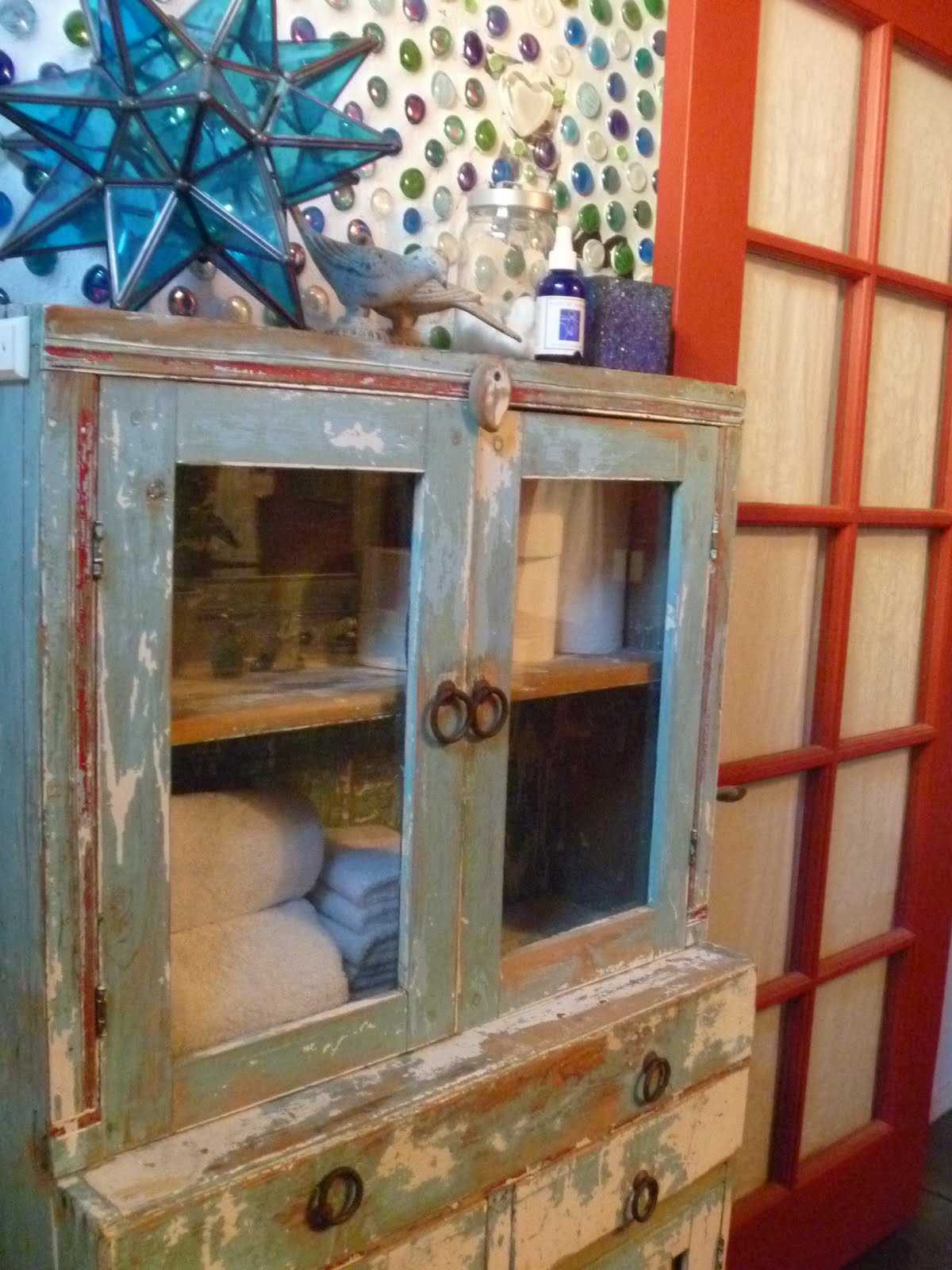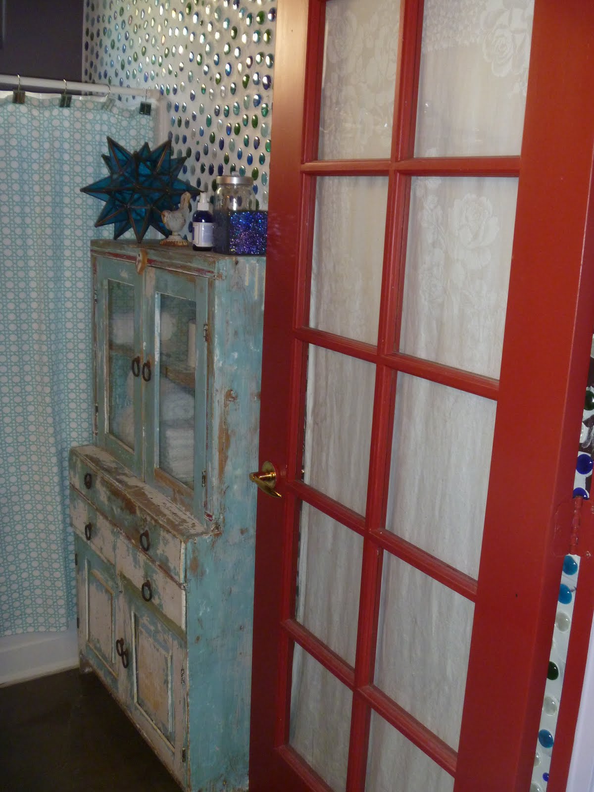 Love your glass bead and grout work on the bathroom wall. I'm doing something very similar and I'm curious did you use sanded or unsanded grout? Keep up the lovely crafting! Anna