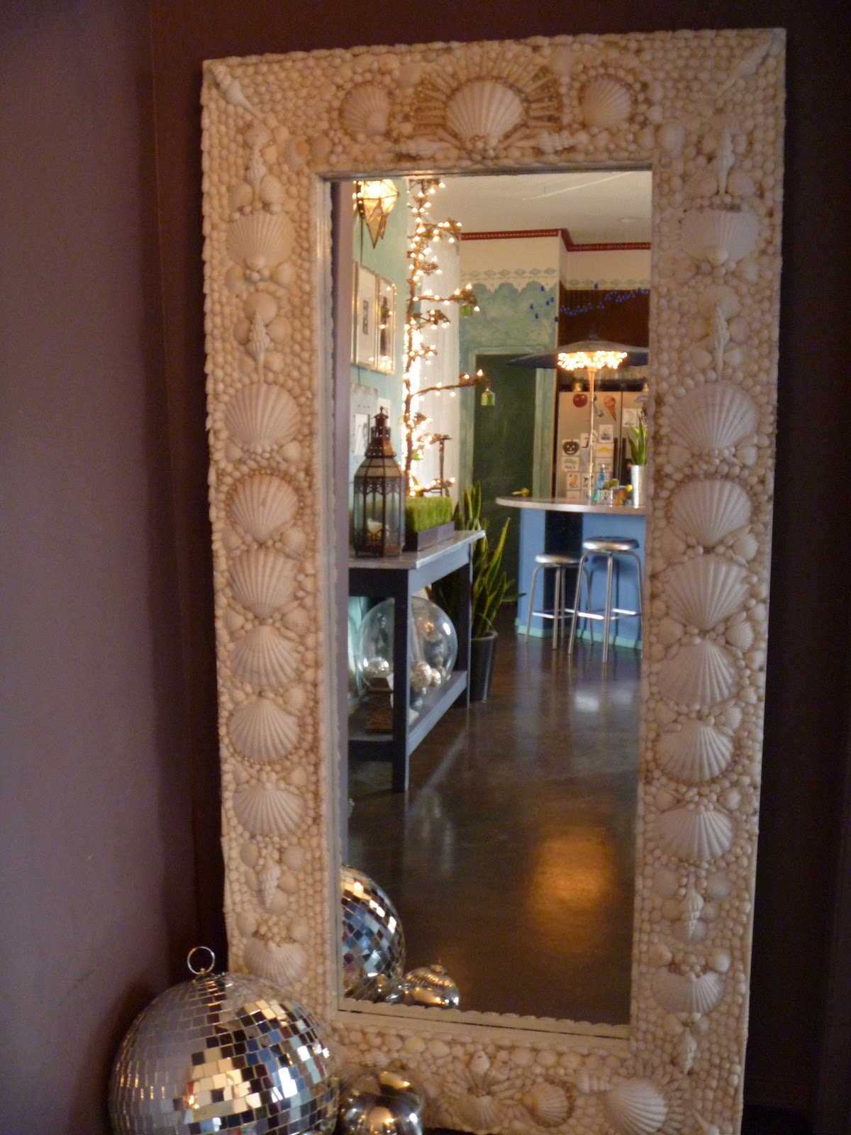| I bought this mirror at Ikea for $80, painted it white and glued EVERY. SINGLE. SHELL. on with hot glue and a lot of patience! I think it was well worth it. |