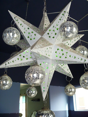 | Christmas ornaments and some wire give a standard Moravian star a little something extra. |